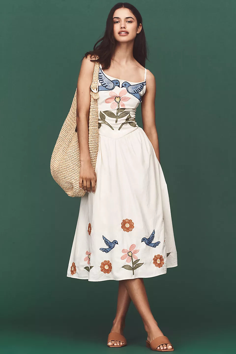 Birdsong Embroidery Dress – Zomerse Elegantie in Beweging